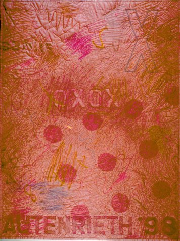 Patricia AutenriethThis piece is a sewing machine drawing. I began with a simple idea and elaborated on it. Because of this "drawing" technique, the quilted texture varies unexpectedly & becomes a three-dimensional drawing.-I've also.come to regard the signature (or, in this case, the name stencil),as an element integral to the work.