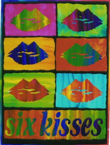 Making use of my own lip print, and borrowing Andy Warhol's layout, I fused fabrics using my favored high contrast colorations. I am particularly interested in the edges of shapes and would like my art quilts to have a closer relationship with the drawn line. To emphasize these graphic edges, I often choose fusing over machine or hand stitched appliqué.